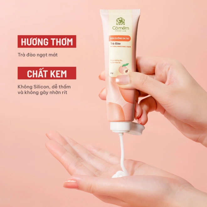 Kem dưỡng da tay Trà Đào được nhiều người yêu thích bởi sản phẩm giúp chăm sóc đôi tay, dưỡng ẩm, làm mềm da tay, góp phần ngăn ngừa nếp nhăn và cải thiện tình trạng da khô rát, nứt nẻ. Sản phẩm phù hợp với cả những người có làn da nhạy cảm.