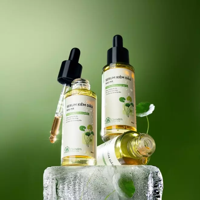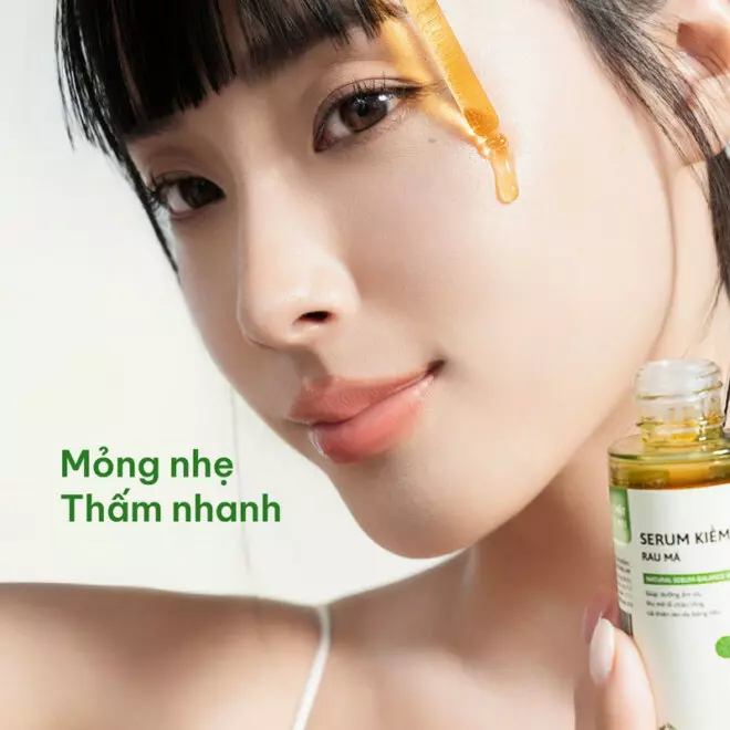 Serum kiềm dầu Rau Má giúp kiểm soát dầu, thu nhỏ lỗ chân lông, làm mờ thâm, mang lại làn da sáng mịn đều màu.